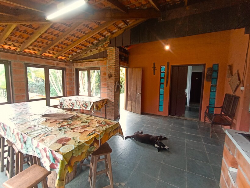 Cozinha com churrasqueira e forno a lenha;